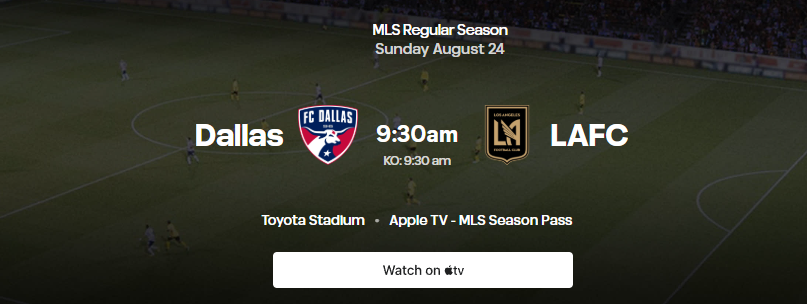 손흥민이 선발 출전하는 Dallas vs LAFC 경기는 공식 중계방송 채널은 Apple TV+ MLS Season Pass 유료 구독을 해야만 시청이 가능합니다.