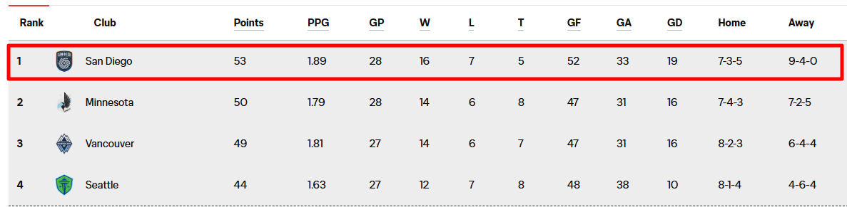 ✅ San Diego 리그 순위
