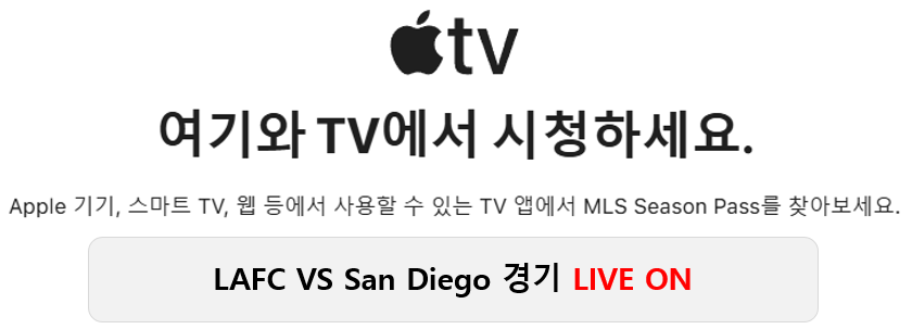 미국 메이저리그 사커 LAFC 전 경기는 공식적으로 Apple TV의 MLS Season Pass로만 중계됩니다.